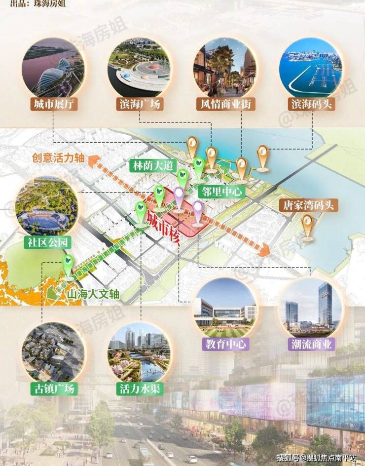 城市展厅 (规划中)、 滨海广场 (规划中)、 风情商业街 (规划中)、 游艇码头 (规划中)、 邻里中心 (规划中)、 社区公园 (规划中)、 活力水渠 (规划中)、 古镇广场 (规划中)、 教育中心 (规划中)、 潮流商业 (规划中)——十大场景如珍珠般串联,让城市的烟火、公园的鲜氧、商业的繁华、水景的灵动,在此无缝交织。