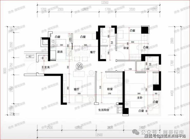 项目四栋高层规划为87-99平三房产品,其中87平三房两厅两卫为中间套,99平三房两厅两卫为边套产品,二者合计约520套,占比约85%;