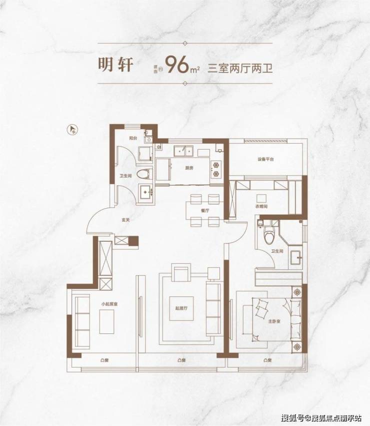 96㎡户型:全明南北通透格局,奢阔阳光宽厅,开放式LDK餐厨一体化,提升空间的通透感和宽敞度;更预留灵动拓展空间,满足家庭每阶段的不同需求。
