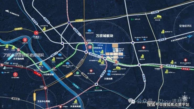 3️⃣交通路网:“三横三纵”的立体式公路交通网络,三横是指卫国道、成林道、津滨大道;三纵是指十一经路(内环线)、红星路(中环线)、昆仑路(东南快速线)。