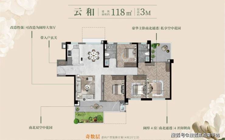 当传统118㎡还在宣传户型方正、采光充足等基础卖点的时候,建发瑞云早已先人一步,通过空间复合承载更多生活方式, 让漳州118㎡也能有大平层的享受体验。