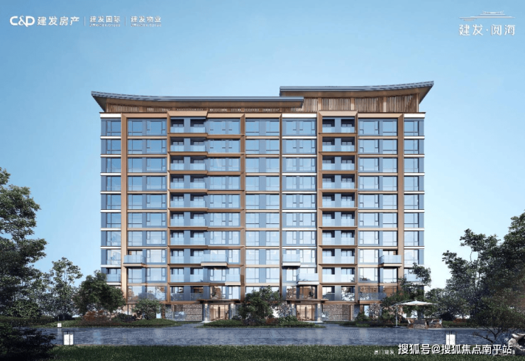 建发·阅海采用建发房产诗意东方风格打造,建筑塔冠上,中式挑檐的元素以一高一低的错落形式,既诠释“东方屋脊”的端重形象,又不失现代的轻盈灵动。香槟金金属线条、金属漆、深浅色质感涂料和多彩漆等多重复杂材料的运用,则写照东方美学的“流光溢彩”与湾海的大气多姿,焕新岛城人居建筑审美的至善追求。