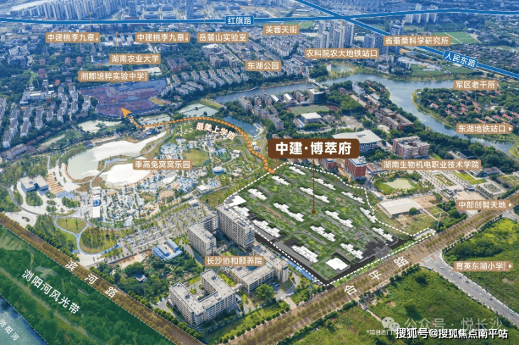 在寸土寸金的长沙内五区,大面积的公园与河流,是最奢侈的配置。博萃府的占位堪称奢侈:项目西侧紧邻840亩东湖生态公园,南向则直面一线浏阳河风光带。这种“一河一湖双公园”的生态格局,在长沙主城区的新房项目中,几乎是孤例。这不仅是窗外的风景,更是每日可享的健康资产。