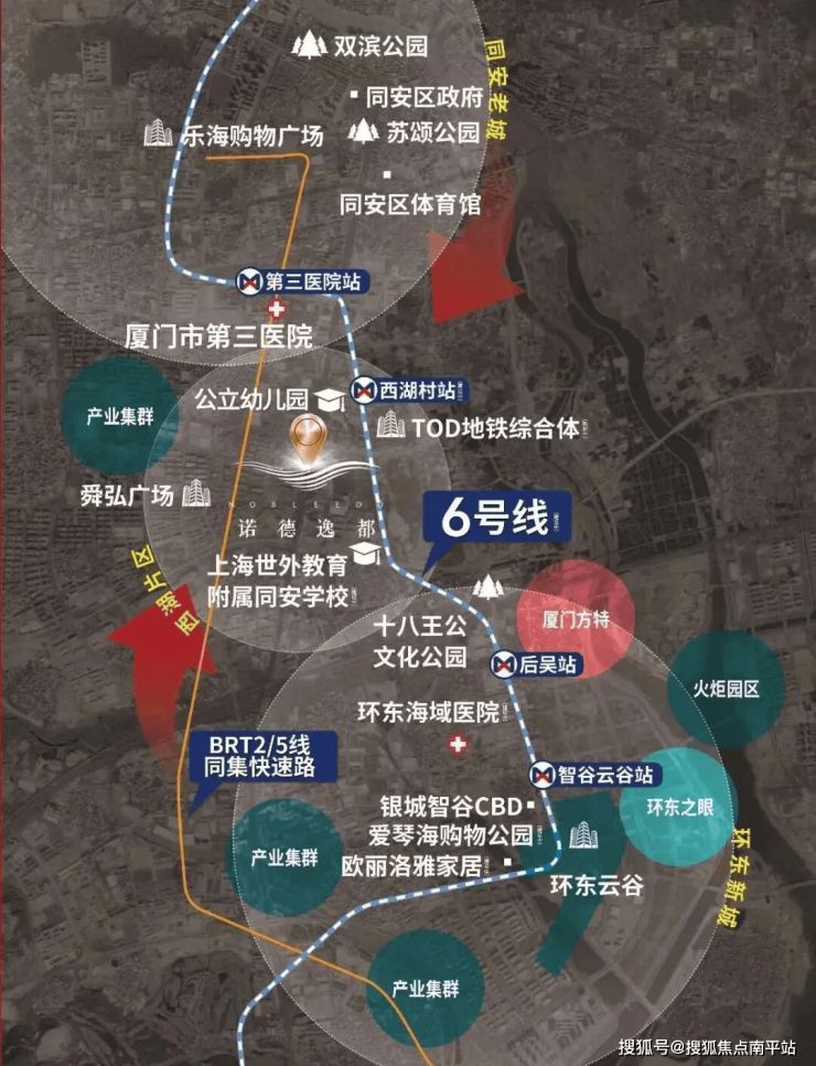 项目所在片区位于厦门北部城市组团几何中心,沿厦门城市中轴线串联同安老城、环东海域及厦门本岛。南北连接同安新城和同安老城,东西衔接同翔高新城和同安工业集中区。