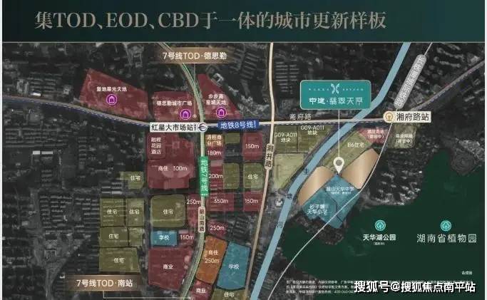 三纵一横的交通路网,7+8号线(规划)交汇站“红星大市场站”、城铁+8号线(规划)“湘府路站”,与项目的距离分别约800米、300米。步行即可抵达的双地铁,已然是不少项目难以达到的地步。