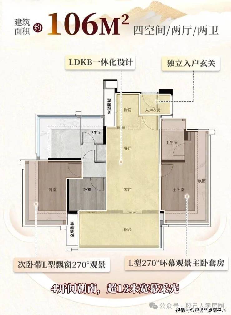 建面约106㎡和119㎡的户型也同样拥有多开间南向、L型飘窗、宽幕采光等等,不同需求的买家可以各取所需。