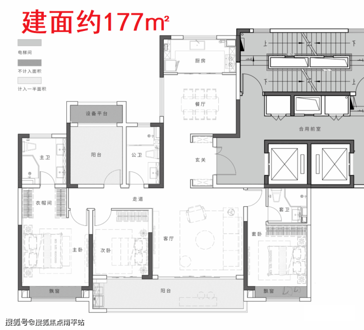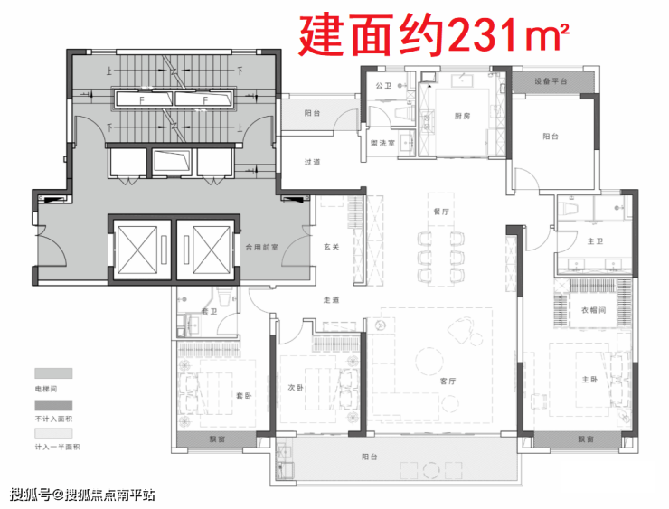 清一色两梯两户纯板楼,目前仅曝光建面约177㎡、231㎡两款户型平面图: