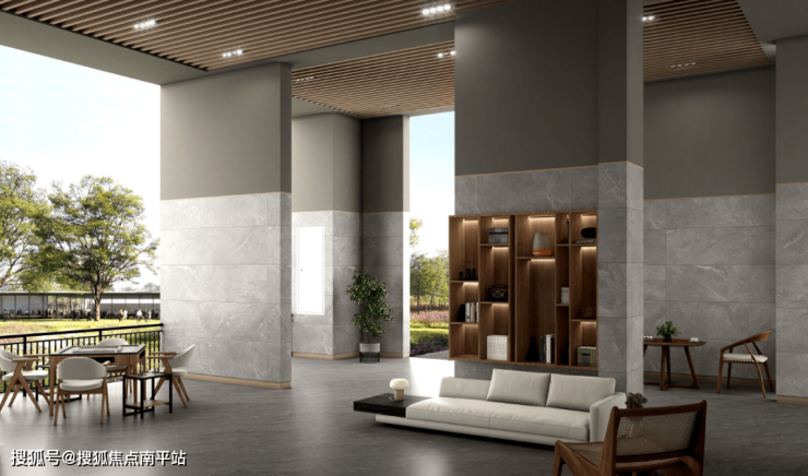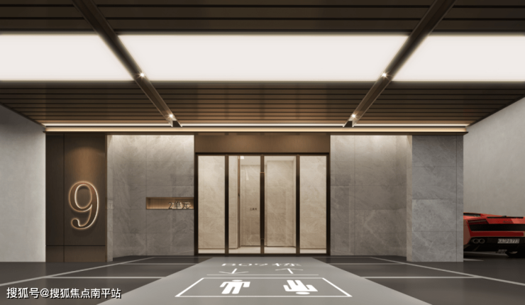 在地下大堂,恒伟君樾洋湖设计了“落客式地下光厅,顶部格栅吊顶,定制专属楼栋标识,加上大面积灯带,出入皆享受。