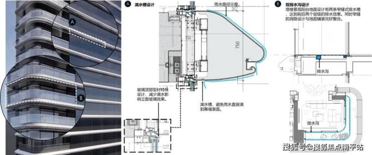 疏:外立面装饰材料采用开放设计,玻璃窗外沿预留定制导水槽,极端天气下雨水可沿立面材料快速疏导至室外,形成“导流-排放”闭环,防水性能稳定可靠,减少渗漏防潮问题。