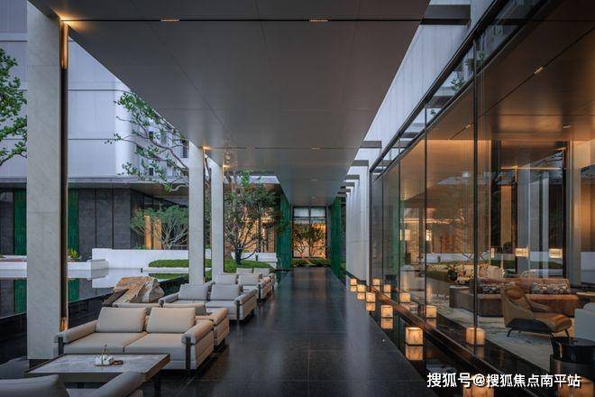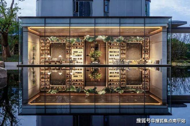 “九天银河入凡尘”,泉瀑院作为迎宾首景,将蓝翡翠制作为拉槽面自然跌瀑,水自上而下缓缓坠入瀑池,珍稀亚马逊蓝石材于光影中流转璀璨,每一道纹理都诉说着非凡的品质追求。