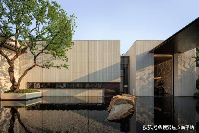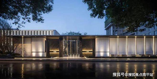 主入口五米净高的门廊,摒弃恢弘气势,以亲和的体量放缓归家步调。地面石材柔和质朴,铜制大门由匠人手工锻造,纹理触手生温。融合橘子洲的地脉精神,选用温润贝金米黄石材,搭配尊贵铜门与仪式感迎宾水台,构筑精奢酒店式艺术府院的价值封面,于方寸之间尽显东方礼序的庄重雅致。