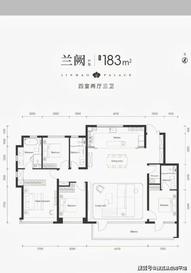D户型 183㎡ 775-830万元 4室2厅3卫 尊享改善之选,多一室更从容