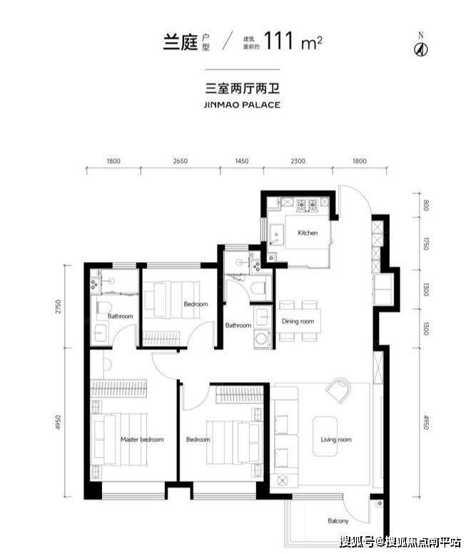 A户型 111㎡ 360-420万元 3室2厅2卫 布局紧凑实用,适合首改家庭