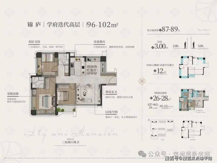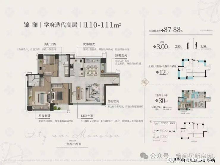 国贸学府锦樾共8栋翔安首个层高3+樾级学府住区,普宅层高3米,第四代洋房层高3.15米。3栋高层、3栋纯四代洋房住宅、2栋洋房并自带一个幼儿园,相当于12年一站式上学,主推建面约86-111平学府迭代高层 | 约132-139平樾级四代宅。