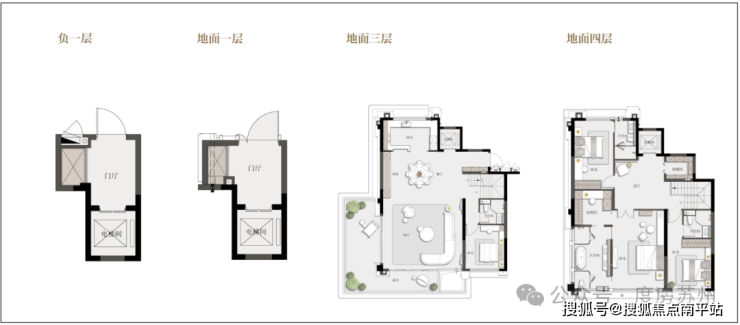 当然,连一向被忽视的中叠,不仅有地上、地下双入户门厅,而且更有 270°空中庭院,实地感受丝毫不逊于下叠的院子,上叠的露台!