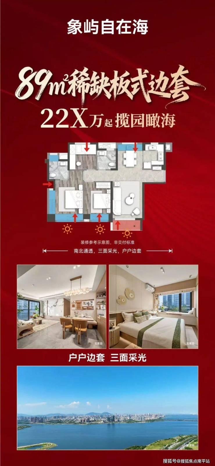 𝟖𝟗㎡稀缺板式边套,总价𝟐 𝟐 X万起。户户边套三面采光、楼王无敌海景、600米全配套、今年买今年住!!