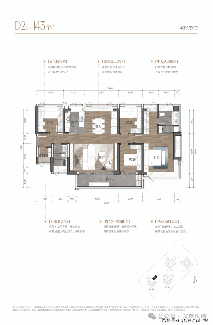 建面约108-143㎡海幕纯四房,臻藏级南向湾海视野,LDKB人性化动线设计,格局方正、高实用率,打造独立玄关、双飘窗主卧、步入式衣帽间等个性化空间。