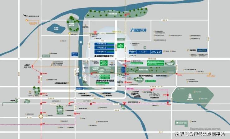 (3)地标集群:西安奥体中心、西安国际会展中心、西安国际会议中心、长安乐、长安书院、元朔大桥、长安云、长安塔