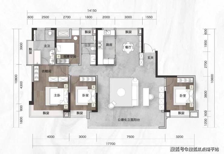 三大经典(约120㎡、143㎡、170m²)户型, 超大横厅+多开间朝南+主卧套房+270度景观飘窗,全新居住尺度