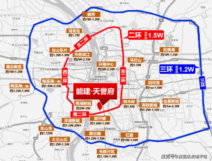 而 能建天誉府,地处天心中心板块,周边又靠近“南湖三子”(绿城、中海、佰昌),是长沙“豪宅聚集区”,无论是城市配套还是自然资源都相当不错。