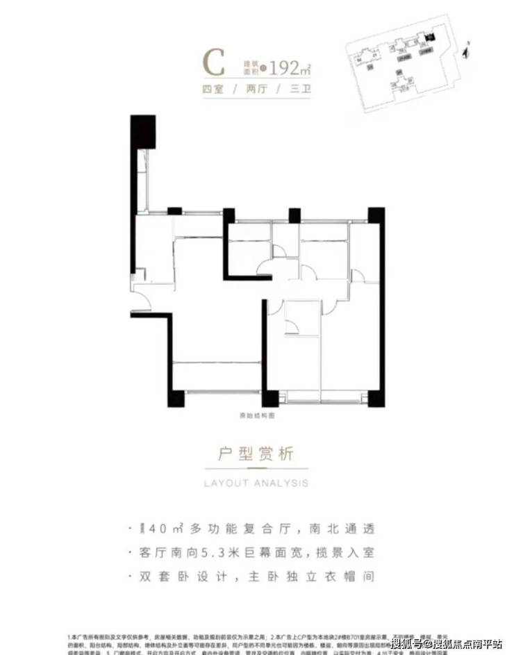 一共规划3栋住宅,总高度53-59层,1-4层是商业,5层为屋顶花园(空中花园),6层为首层住宅。规划131-300㎡四至五房,约624套。