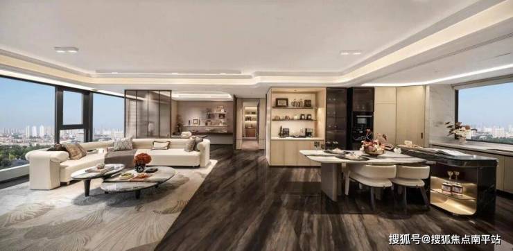 在这个 约8米的灵活超面宽客厅中,起步户型也能媲美200㎡大平层才有的体验,在客厅中享有餐饮、亲子娱乐、观影、瞰景等多重功能。
