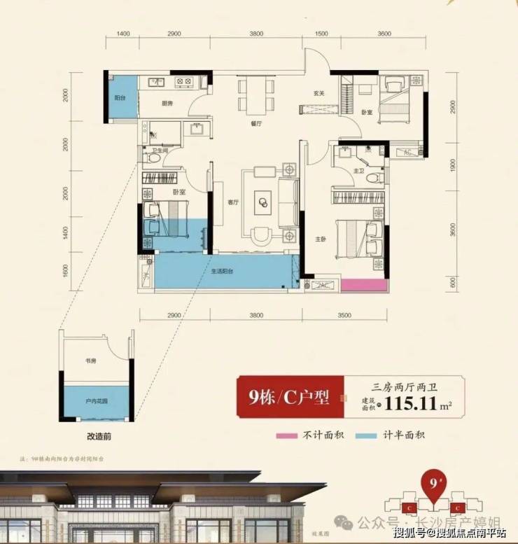 平层面积:115m²(楼层可选)、130m²(楼层可选)、 137m²(楼层可选)