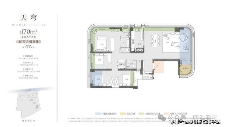 四代住宅户型极致化设计,实现城市景观视野与内部空间相融,以超高得房率,营造更纯粹居住生活。