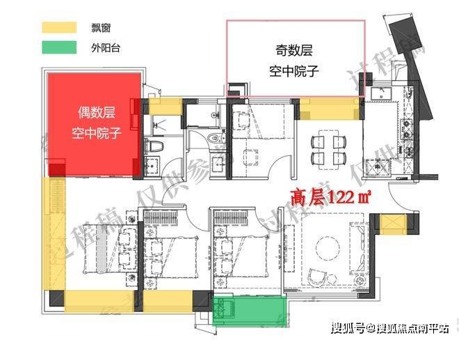 122㎡高层也做了空中院子,每一层都有,面积约13-16㎡!(含业主自拓)综合使用率达到92%以上!前排的空中院子可以180°看海。