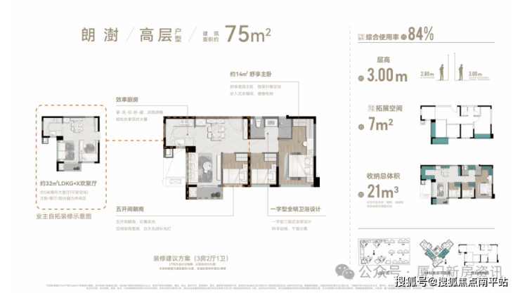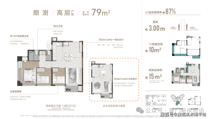 刚需64㎡首开7#楼 仅30套(全盘仅60套),层高3米, 得房率85%,使用面积相当于目前市场上75㎡的户型,客厅卧室全朝南,主卧14㎡带衣帽间,华为鸿蒙智慧+顶配精装,总价 折后280-300万,绝对的岛内新房最低门槛!