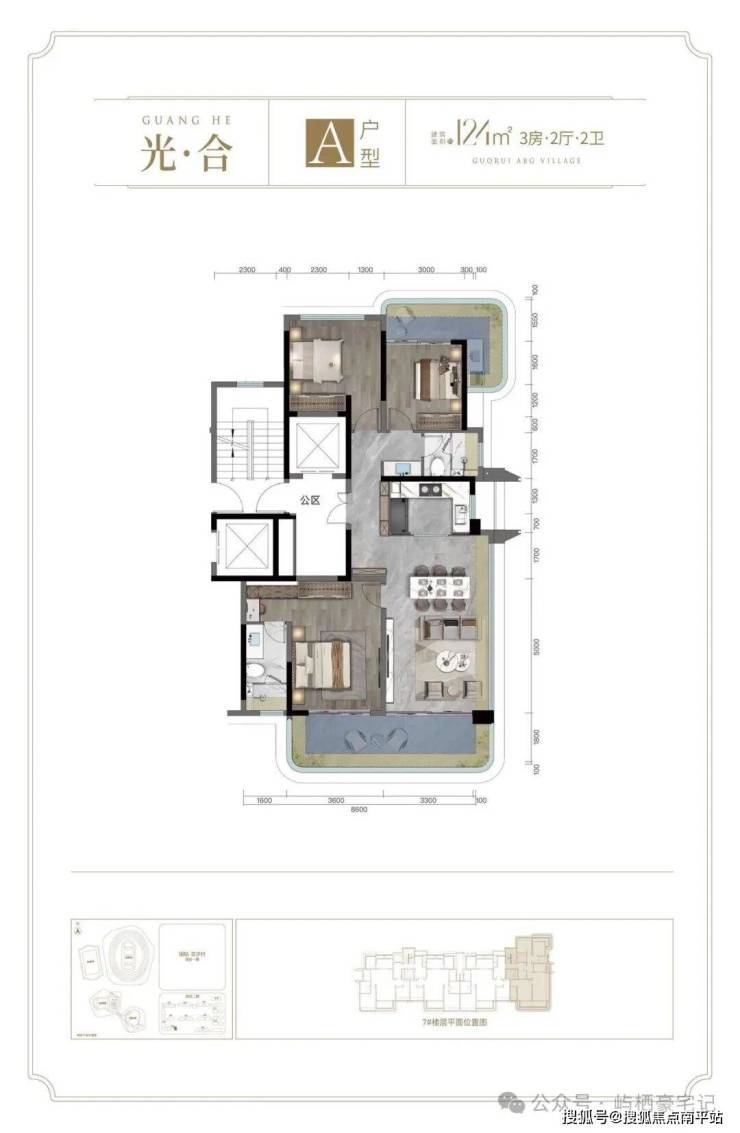A户型: 建面约124㎡ 3房2厅2卫