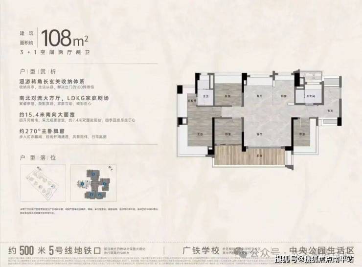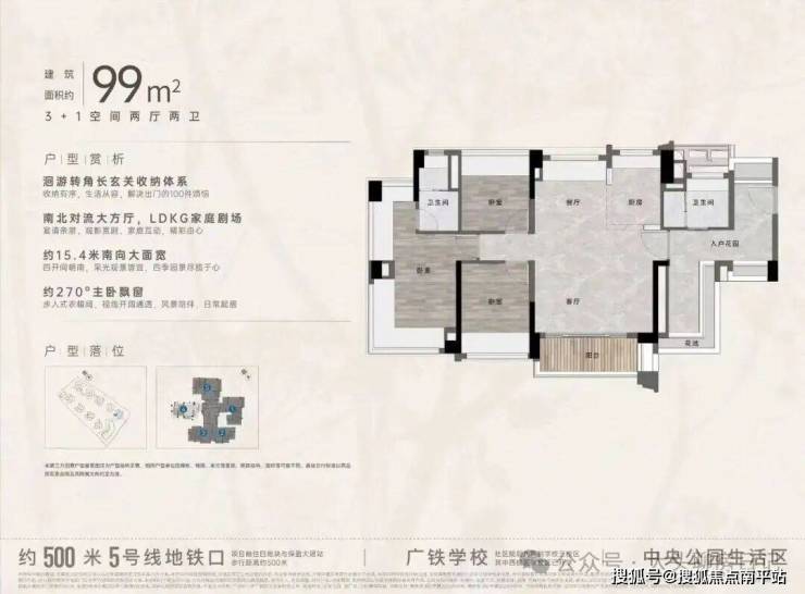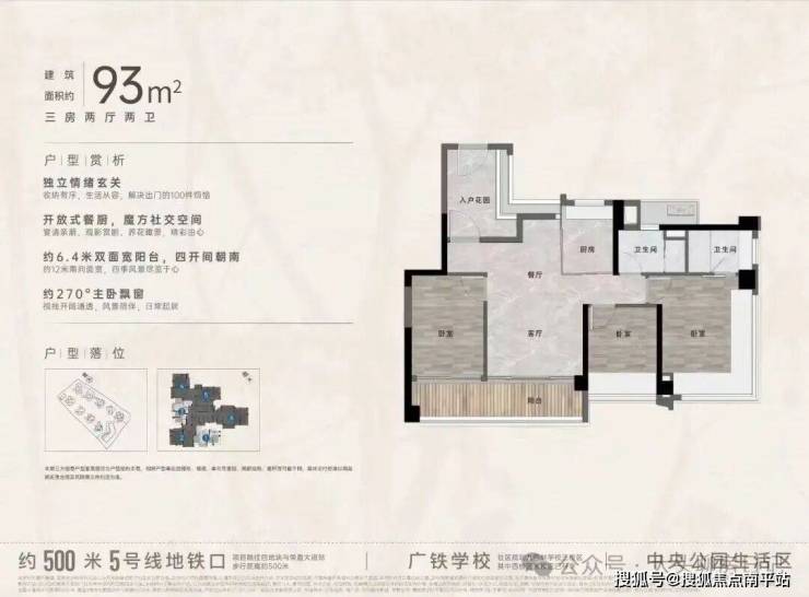 项目加推“中央公园”,紧邻大脚印公园,距离地铁约500米,紧邻学校、酒店,户型涵盖75-88㎡三房,105、125、142㎡四房。