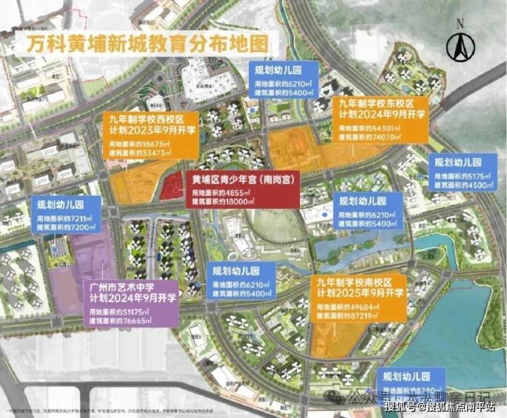 项目规划11所学校,包含幼儿园、小学、九年制学校、高中等,满足孩子从识字到高考的教育需求。此外,黄埔区少年宫(南岗宫)已正式入驻项目。目前广州市属一所艺术高中——广州市艺术中学已签约并工,未来项目将打造全广州具备强竞争力的优质教育集群。