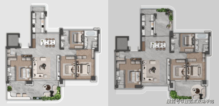 项目涵盖建面约190-430㎡面积段户型,均配备独立电梯厅。300㎡以上的户型额外设置了主人与后勤分离的双动线,并为主卧配置了独立的男女主人衣帽间及全屋独立卫生间。所有户型均注重实用功能,标配储藏间、家政间以及独立的中西厨空间。客厅面宽5.5至9.1米,尺度开阔,并附赠面积超过30㎡的私属空中花园。在建筑结构上采用 框架剪力墙体系 ,确保主要居住空间无承重墙障碍,便于后期业主根据家庭结构调整房间格局,实现全生命周期场景。