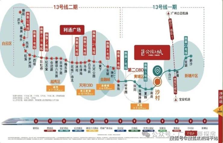 目前在建13号二期横跨黄埔、天河、越秀、荔湾、白云五大主城区,比肩3号线黄金动脉,开通后无须换乘,一轨直达珠江新城(花城广场北站),尽享主城繁华。