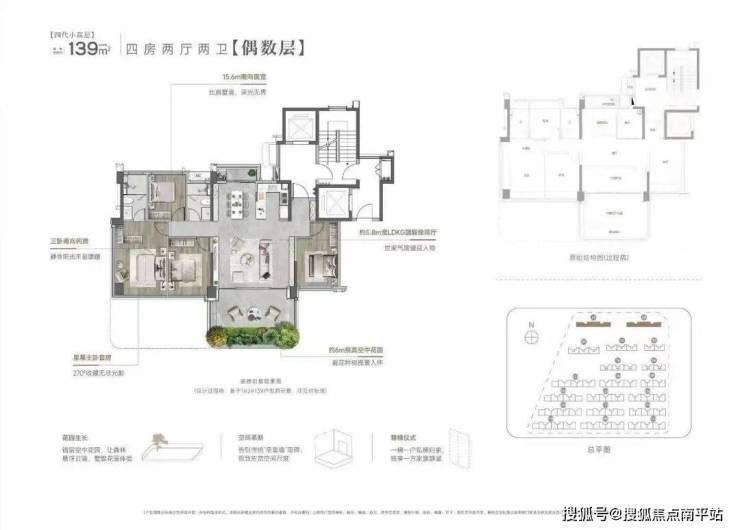 小高层户型,建筑面积约129-139㎡的四代小高层,采用错层挑高设计,配备空中花园与私梯入户,并拥有约3米的层高配置,全方位提升空间的别墅级居住体验。