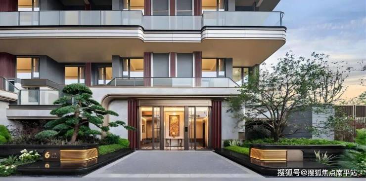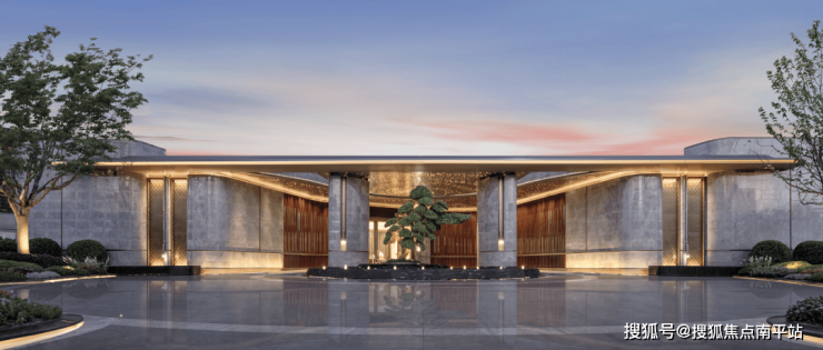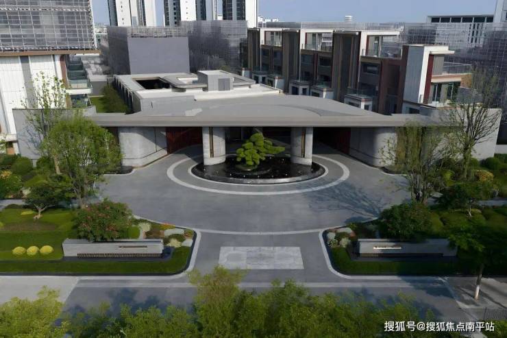 环形港湾之上,孤植一株造型独特的名贵罗汉松,四季常青,寓意守财、吉祥与长寿,彰显家族身份与尊贵;16口喷泉环绕,池心海棠纹树池巧妙融合古厝纹样与现代设计,一步一景,步步生花,尽显雅致与生机。