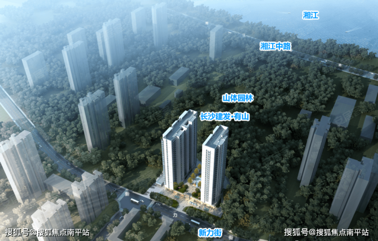 从航拍来看,长沙建发•有山到湘江的直线距离不足400米。