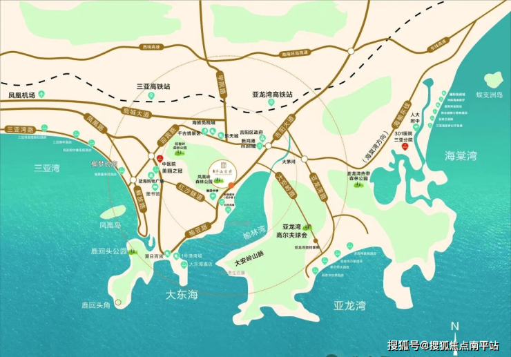 1、地处三亚城芯,静享榆林湾内海、600亩红树林湿地公园,畅达三亚湾、大东海、亚龙湾、海棠湾等四大湾区。