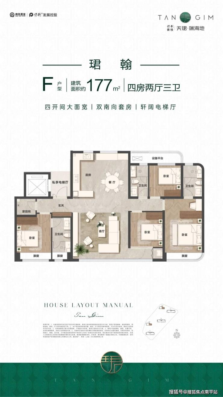 183㎡与177㎡的四房户型,追逐大平层的高净值人群,可以好好研究。