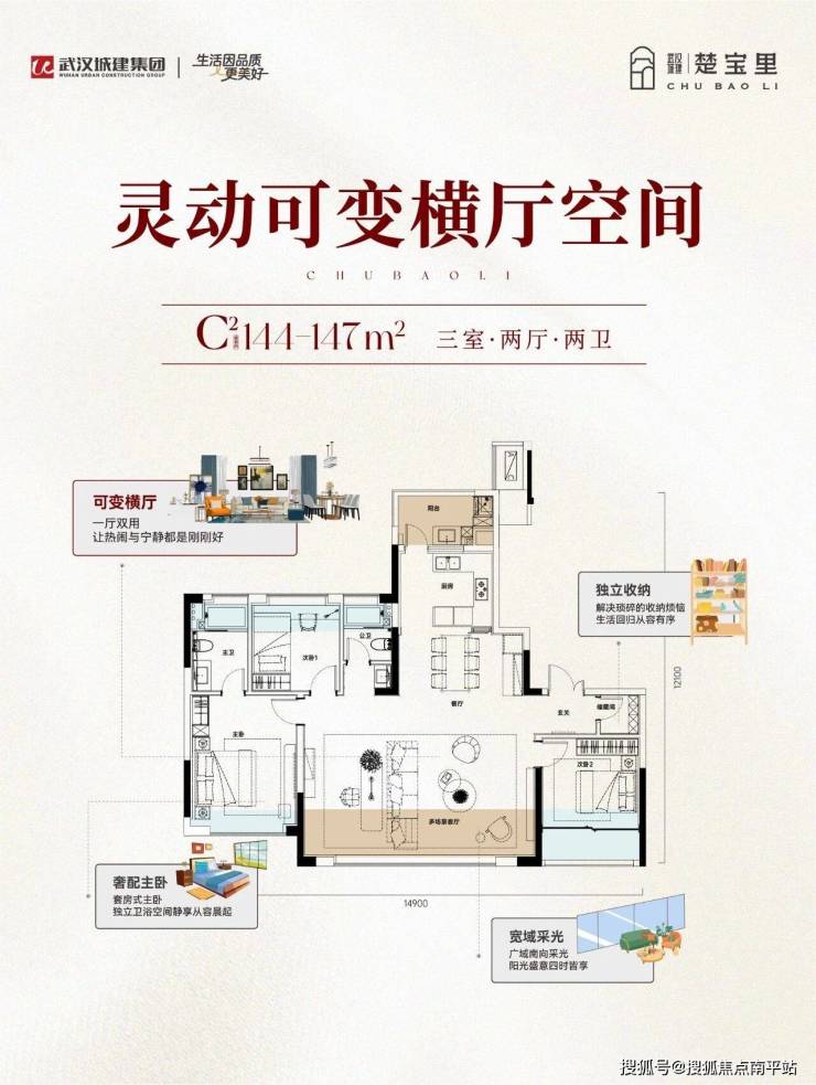 🌟C2户型约144-147㎡|灵动可变横厅空间