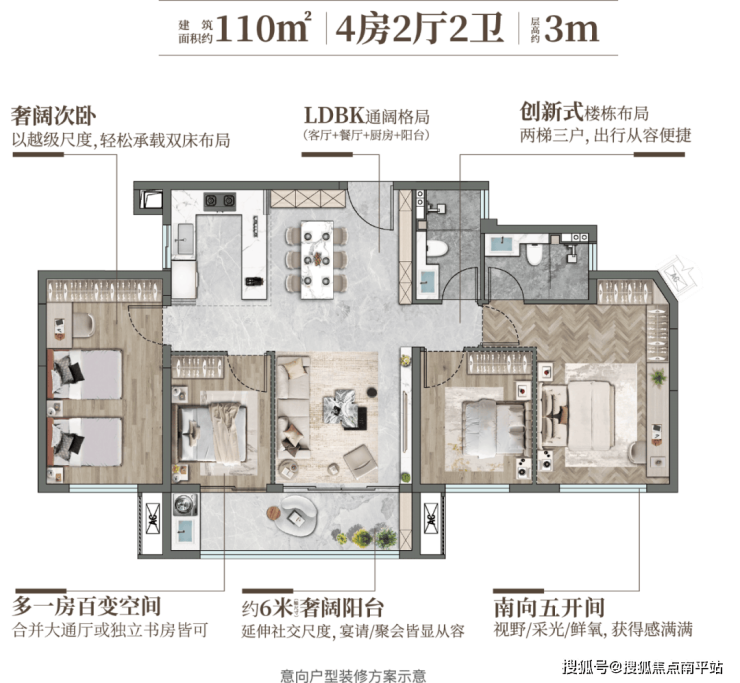 (1)建面约110㎡五面屏大四房,让成长型空间,住出改善级享受: