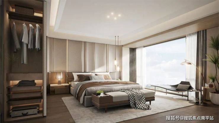 ④270°双景主卧,把窗外风景变成“生活背景”,推窗即赏景。