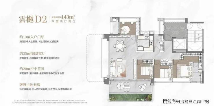 户型“王炸”产品:143㎡户型+四代空中墅+270°全景舱+入户明厅+高得房率