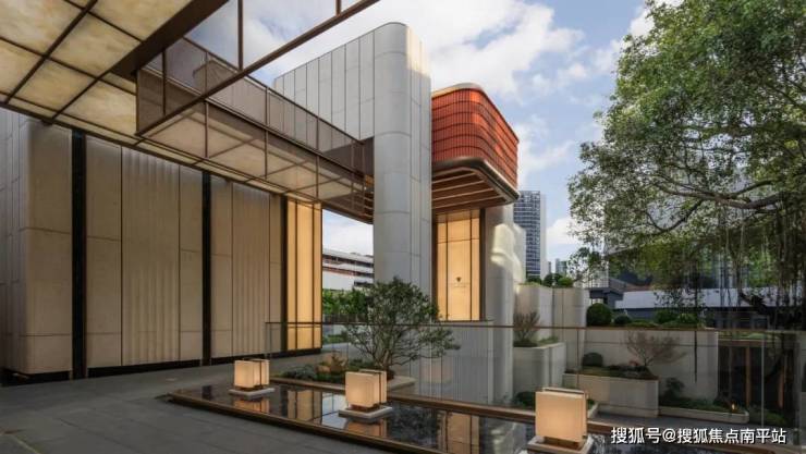 示范区以“回型动线”展开叙事:外圈是连贯的展示与归家路径,内圈则围合出层层退台的庭院。塔楼底部的架空空间也被纳入这一系统,让人可以在不同高度间穿行、驻足、回望。行走其中,建筑、庭院与景观渐渐融为一个可漫步、可回游的生活场景。