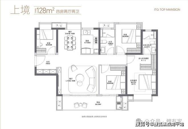 ▫️ 128㎡四房:南北双阳台,主卧套房设计,满足二孩家庭需求