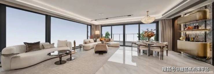 多面弧形玻璃栏杆,围合起270°的环幕视野。约27m空中花园,满足多元户外生活场景。