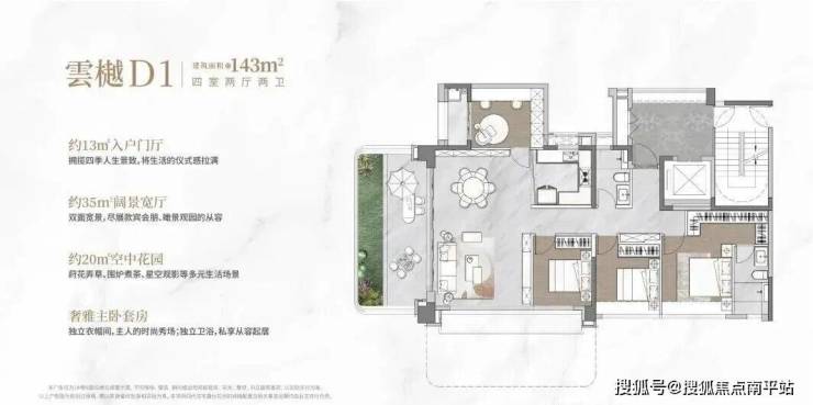 户型“王炸”产品:143㎡户型+四代空中墅+270°全景舱+入户明厅+高得房率