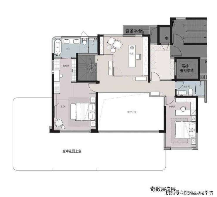 独立电梯厅+礼序玄关,尊崇归家;奇偶错层空中花园设计,奇数层位于客厅南侧,偶数位于客厅东侧;打造独特的客厅院落化效果,与公区产生更好的互动性;大露台空间,最大程度放大空中庭院的优势,对于大家族而言,可以在此打造尊崇的家庭宴会,也可以秒变企业家商务社交的空中会所;南北通透,多开间朝南,明厨明卫,通风、采光都得到了更大扩充;规划独立家政间、生活阳台,满足收纳晾晒等功能,使用更加便捷;