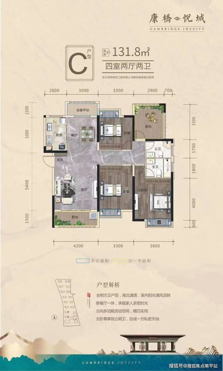 🍃127㎡、129m²、131㎡四房两厅两卫纯南北通透,全明户型,客厅约4.2m大开间,高赠送!!!